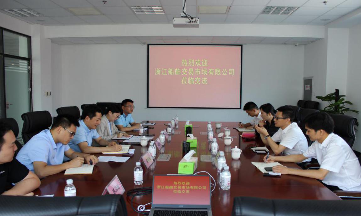 嚴洪波總經理對浙江船舶交易市場有限公司的成立背景、發展歷程、業務開展和未來愿景作了詳細介紹。嚴總談到,自2015年起,浙江船舶交易市場有限公司推行市場化改革,逐漸由政策性服務機構轉變為市場化交易機構。發展至今,其交易額已占國內市場總量的三分之一。嚴總及同行成員還向我方介紹了業務開發方面的成功經驗,并就中心如何實現業務突破、后期雙方合作展望等內容提出了寶貴意見。